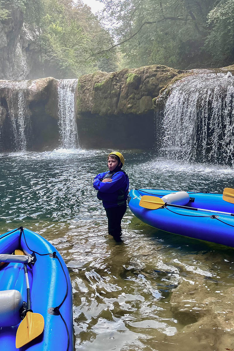 Wanneer je een autovakantie in Slovenië plant, dan is dit goed te combineren met buurland Kroatië. Een sportieve en uitdagende activiteit is kajakken op de Mreznica rivier, op ruim een half uur rijden vanaf de beroemde Plivitce meren. Wij doen dit met Raftrek; die een jong spontaan team hebben, goed Engels spreken en prima met tieners overweg kunnen. Je bent ruim drie en half uur onder de pannen en alle benodigdheden- behalve badkleding- krijg je terplekke. In tweetallen zit je in de kajaks. De tocht komt langs rustige oevers waar veel watervogels en soms bevers te vinden zijn, en gaat even gemakkelijk over in talloze watervallen waar je de ene keer vanaf springt en de andere keer met kajak en al vanaf glijdt. De hoogte sprong is rond de 8 meter. Een topactiviteit voor waterratten en jonge waaghalzen.
