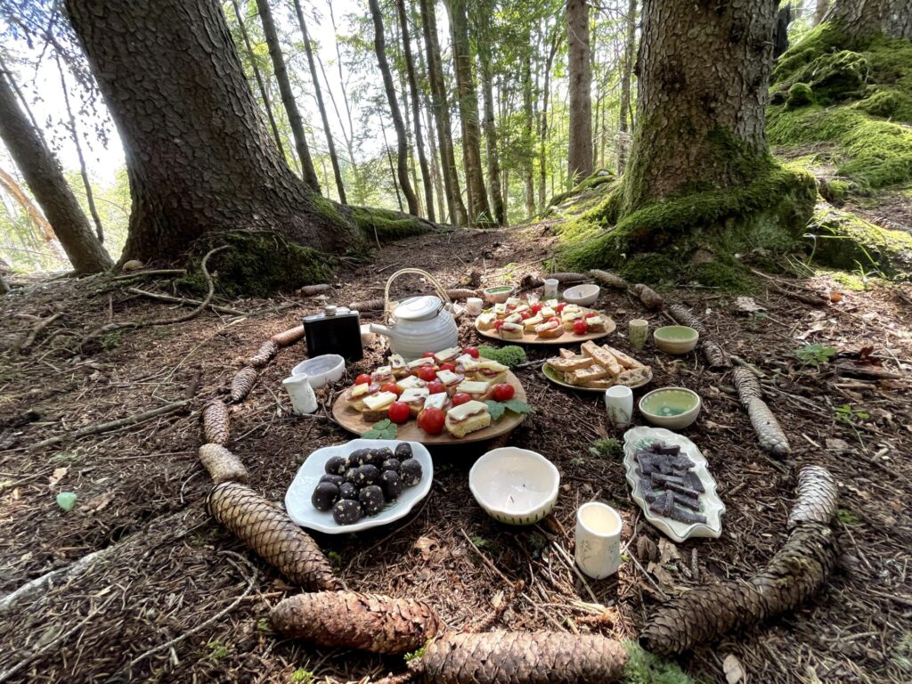 Deze bijzondere activiteit wordt afgesloten met een soort high tea van en in het bos, hangmatrust, klankbad en natuurlijke voetreflexologie door over de bosbodem te wandelen.