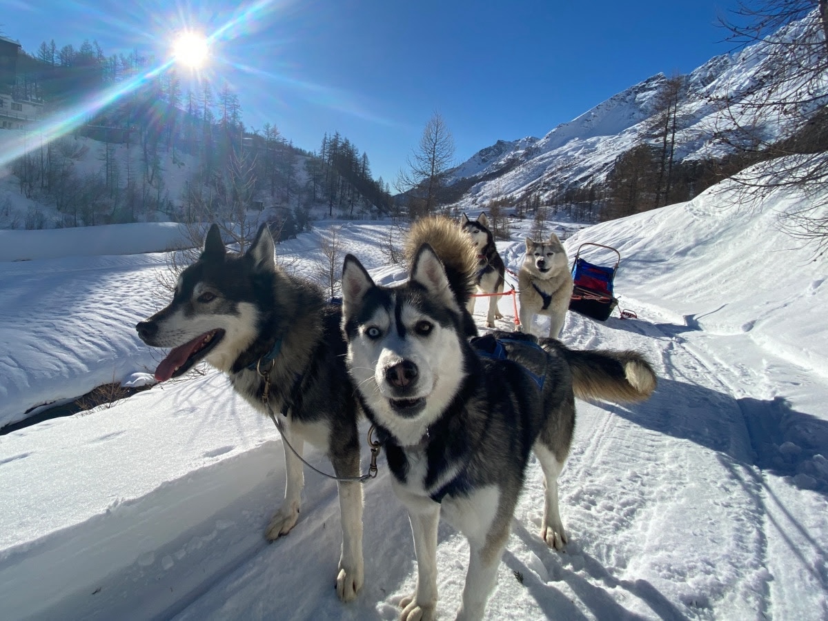 Check ook: huskytochten en Courmayeur, een charmant bergdorp met geweldige skipistes.husky-drives zijn ook mogelijk in Breuil-Cervinia.