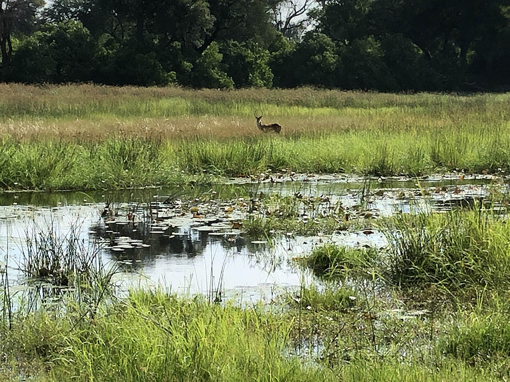 Galante en wendbare impala’s verspreiden zich al springend in kleine groepjes in het hoge riet. Ook zij zoeken beschutting en verfrissing, zich niet bewust dat er een krokodil op de loer kan liggen. Of een luipaard, want deze slinkse kat kan geruisloos sluipen rondom ondiep water. Dat luipaard hebben we vandaag niet gespot. Het is een van de meest schuwe katachtigen en leeft solitair, dus ook lastig te vinden. Morgen doen we een nieuwe poging.