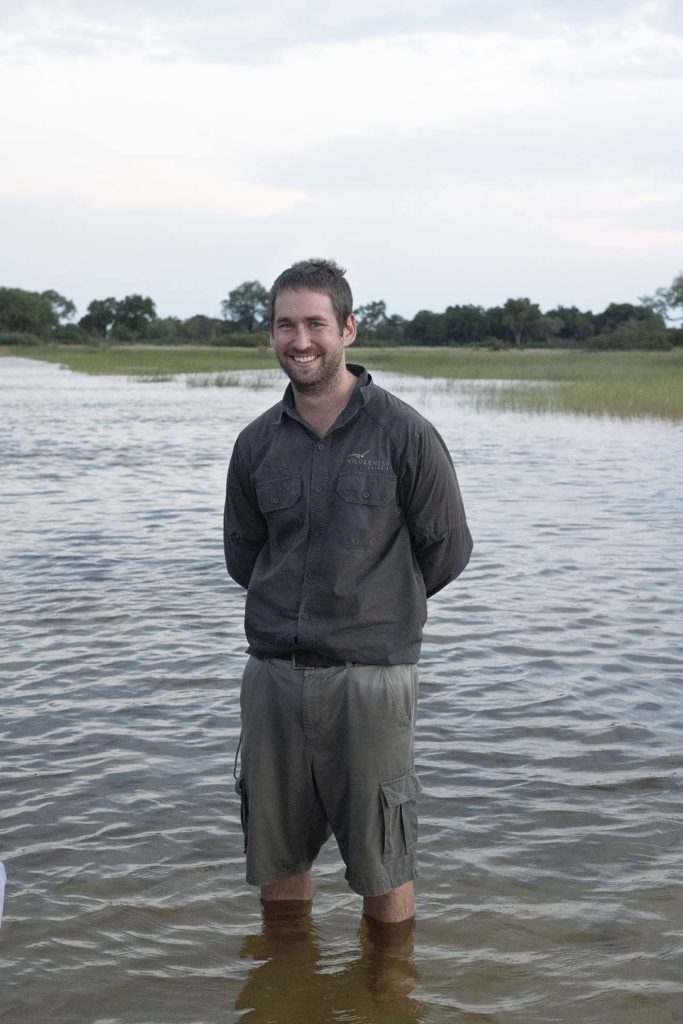 De dagelijkse problematiek is nauwelijks zichtbaar tijdens onze reis. Maar het houdt ons wel constant bezig, want de natuur moet keihard vechten voor haar bestaan. Wanneer we met Robert Taylor door de noordelijke flanken van de delta rijden, in de Kwedi concessie, overvalt opnieuw de vredige stilte. De uitgestrektheid. En elke keer weer de verrassing. Ook voor Taylor als onderzoeker: “Dit is zo’n uniek gebied. Ik blijf er versteld van staan”, zegt hij zuchtend. Onlangs heb ik een nieuwe libellensoort ontdekt en laatst vlakbij de lodge, Vumbura Plains, een nieuw vleesetende plantensoort die afkomstig lijkt van de Congorivier. Zeker het gevarieerde kleine waterleven wat zich hier afspeelt fascineert me.”