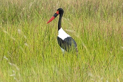 Galante en wendbare impala’s verspreiden zich al springend in kleine groepjes in het hoge riet. Ook zij zoeken beschutting en verfrissing, zich niet bewust dat er een krokodil op de loer kan liggen. Of een luipaard, want deze slinkse kat kan geruisloos sluipen rondom ondiep water. We hebben veel geluk, want er is een tweejarig mannetje gespot die een oud hapje wegwerkt in een boom. Het prachtige dier is gelukkig niet onder de indruk van onze 4×4 jeep, en komt na zijn ontbijt langzaam in beweging. Het solitaire luipaard struint op z’n dooie akkertje door het hoge gras.