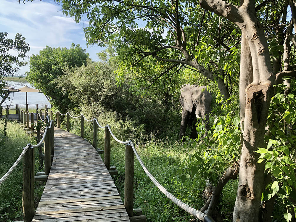 Een dag later struint er bijvoorbeeld een imposante bull rond de receptie en tijdens een heerlijke bootlunch waar we dobberen over het Savute kanaal, moeten we wachten met aanmeren. Er zwemt namelijk een olifant langs de kade. Het dier besluit om aan wal te gaan, pal aan de achterkant van het luxe kamp. DumaTau ontleent zijn naam dan wel aan ‘de brul van de leeuw’, maar het zijn in dit gebied zonder twijfel de grote kuddes olifanten die hier de dienst uitmaken.