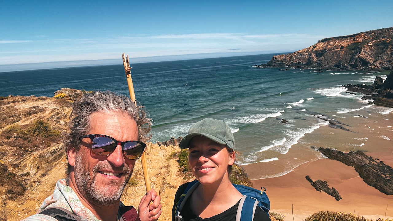 Zo ook op de Fishermen’s Trail waar ik onlangs samen met mijn 18-jarige dochter, Toni, vier dagen langs de Portugese kust liep. Een prachtige ervaring om vier dagen, even helemaal afgezonderd van de wereld, samen met een van mijn drie kinderen goed bij te praten. Ik kan het iedereen aanraden. De Fishermen’s Trail is misschien wel de mooiste tocht die ik ooit heb gelopen. Wandelend langs de woeste zee, over de hoge kliffen, door het mulle zand met eindeloos veel mooie bloemen rondom je voeten. En dan s ’avonds lekker in een hotel slapen, gegrilde vis eten met was ijskoude lokale wijn. Niks meer aan doen.