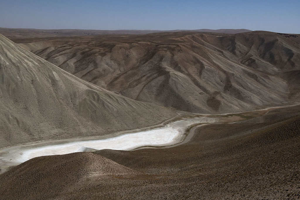 <– “Ik had gelezen over de prachtig blauwe meren van het National Park Band-e-Amir, maar als je er daadwerkelijk voor staat, is het onwerkelijk. Alsof je op een andere planeet bent. Het park wordt ook wel Aghanistan’s Grand Canyon genoemd. De intens blauwe kleur van de meren komt door het zeer zuivere water dat veel calcium bevat. Het park wordt veel door de Afghanen zelf bezocht, vooral op zondag.”