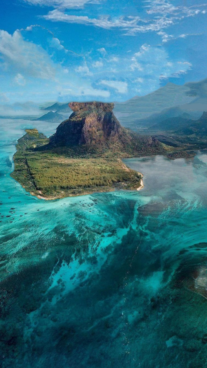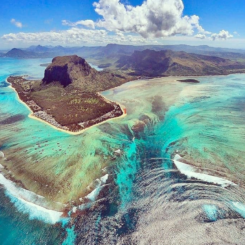Op het zuidwestelijke puntje van Mauritius, tegenover de beroemde berg Le Morne Brabant, is het oceaanplateau op spectaculaire wijze zichtbaar. Vooral vanuit de lucht is het adembenemend schouwspel, waarbij ondiep en diep water samenkomen waardoor er en onderwater waterval tevoorschijn komt. Maar is dat ook zo?