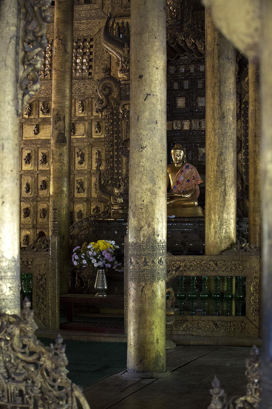 De liefde voor Aung San Suu Kyi is overal in Myanmar zichtbaar. op posters, op vlaggen en verbeeld in kitscherige souvenirs. Ze lijkt op handen te worden gedragen. We dalen echter verder af van de bewoonde wereld, naar het zuiden. Gouden pagodes met hun stoepa’s (een religieus complex met ronde torens) pronken aan de rand van dorpen. Geen ander Aziatisch land telt zoveel heilige bouwwerken als Myanmar. Het boeddhisme vormt de belangrijkste en meest tastbare levensfilosofie in de dagelijkse samenleving.