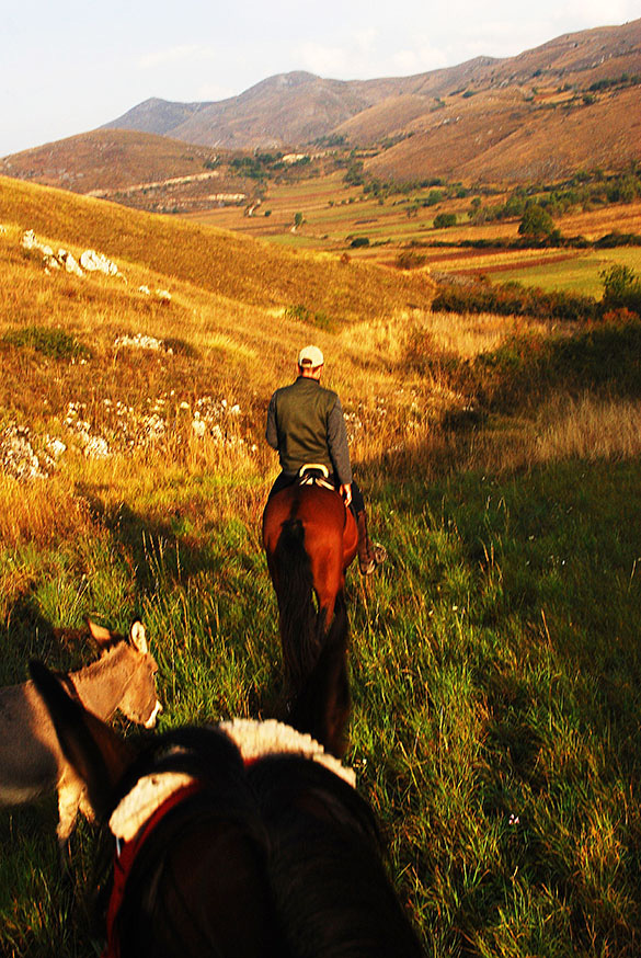 In het hart van het ruige en authentieke Italiaanse Abruzzo, nabij het dorpje San Stefano, is het mogelijk om paardrijtochten te maken met gids Claudio Mecoli. Sinds een aantal jaren bezit hij een kleine kudde waarmee hij dagelijks groepjes op pad neemt. Ik frons mijn wenkbrauwen wanneer hij met twee kleine tengere paardjes aan komt lopen. Moeten die smalle hoeven het ruige rotslandschap trotseren? Binnen vijf minuten blijkt de bezorgdheid loos alarm, want ondanks hun kleine voetjes bewegen de dieren zich met alle gemak over steile paden en ruige stenen. Ze zijn het gewend en barsten van de energie. Onderuitzakken in het zadel dus, teugels losjes in de hand en blind vertrouwen op het paard.