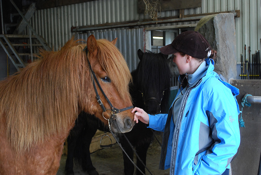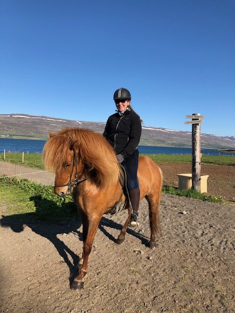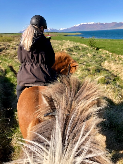 In mei 2019, precies tien jaar later, ben ik opnieuw in IJsland. Het zuiden is helaas onder de voet gelopen door toeristen. Dat geldt gelukkig niet voor het ongerepte noorden. Daar valt genoeg te ontdekken. Op de laatste dag van onze trip met Voigt Travel is er de mogelijkheid om een buitenrit maken, nabij de noordelijke hoofdstad, Akureyri. Ik ga op pad met de jonge Sunneva, die dagelijks helpt met het runnen van de paarden en hun verzorging. Ze hebben ruim zestig IJslanders in hun beheer.