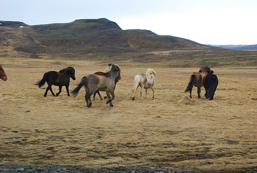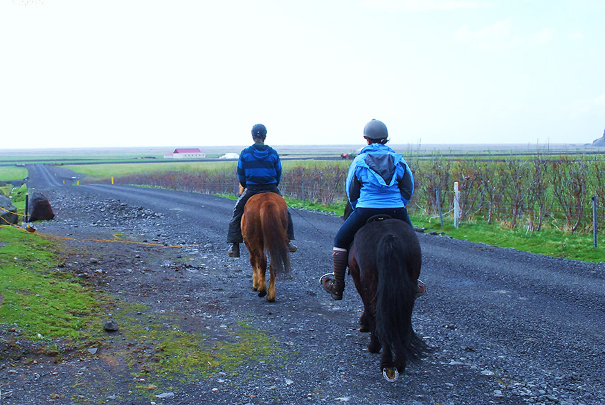 In 2009 al bezocht ik in de omgeving van Hella/Vik (het zuiden van IJsland) een kleine ranch. Daar reed ik op een temperamentvolle donkerbruine IJslander. We dwaalden over stroompjes vol dikke stenen, galoppeerden over uitgestrekte velden met niets dan leegte en de horizon voor ons. Onvoorstelbaar dat die kleine hoeven zo sterk zijn en mij met gemak over de hobbelige ondergrond droegen. De wind gierde en het paard proestte van ontspanning. Verder niets dan stilte.