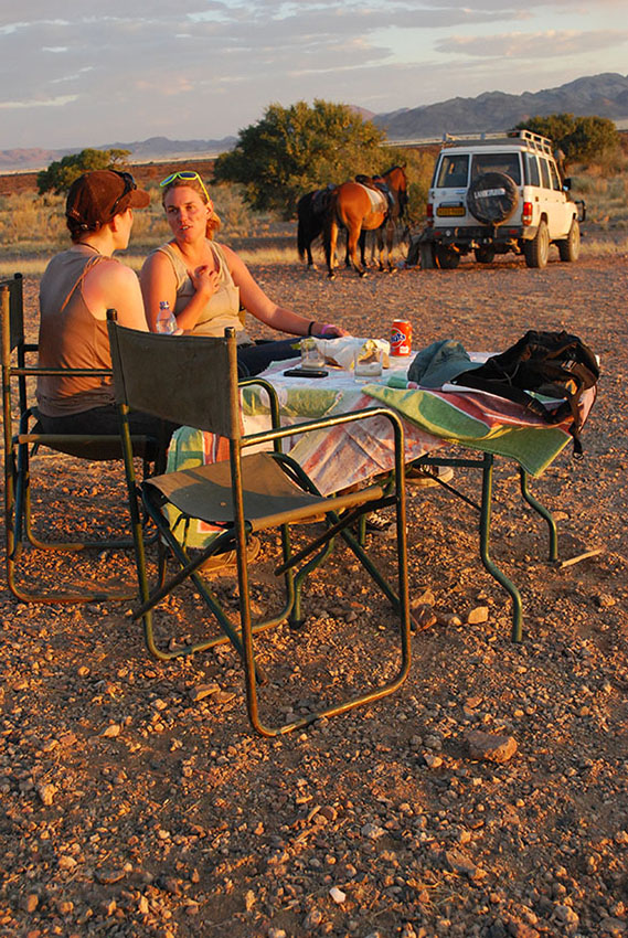 Desert Homestead biedt diverse trips die dwars door het land lopen. Probeer eens een sundowner: na ruim een uur op pad te zijn met de vriendelijke Zuid-Afrikaanse gids Meldinda van den Berg, wordt een van de vele fraaie plekjes uitgezocht waar een collega wacht met hapjes en drankjes totdat de zon ondergaat. De paarden rusten wat, om na een half uurtje huiswaarts te keren onder een heldere sterrenhemel. Meerdaagse trips zijn ook mogelijk. Een prachtige ervaring: alleen op de wereld met je paard. Een sundowner trip van drie uur kost circa €80 p.p, inclusief drankjes en hapjes.