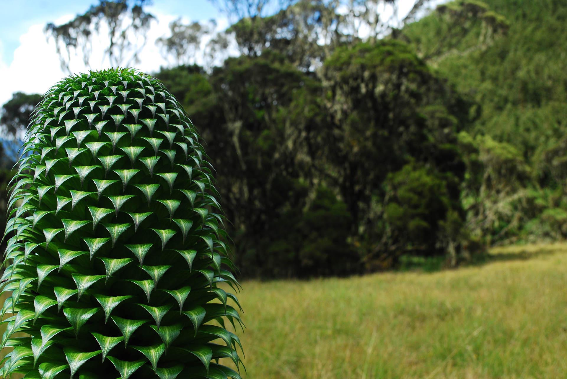 De rijke en afwisselende vegetatie waar Balrukku zo enthousiast over spreekt, is inderdaad overweldigend. De eerste 300 meter zijn lang en steil. Het eeuwenoude natte bos bestaat uit tropische planten, klimmers, hoge struiken en metershoge bomen. Na twee uur lopen verandert het woud in een groot open veld vol enorme dichtbegroeide varens. Het smalle pad verdwijnt bijna in de groene plantenzee. Na zo’n honderd meter kronkelt het pad omhoog. Grote stappen. Het klimmen kost veel energie. De grond is glad; overal liggen bladeren op de grond. Even stoppen en op adem komen.