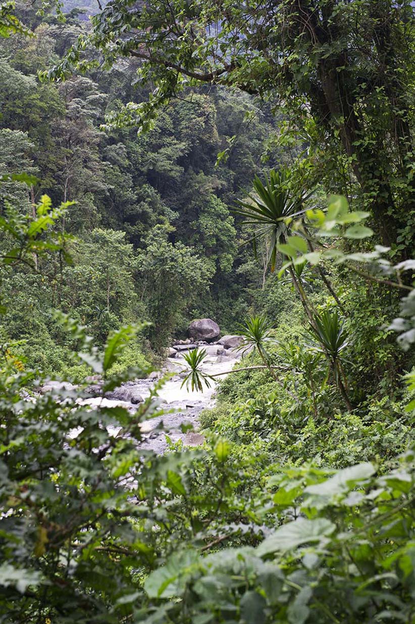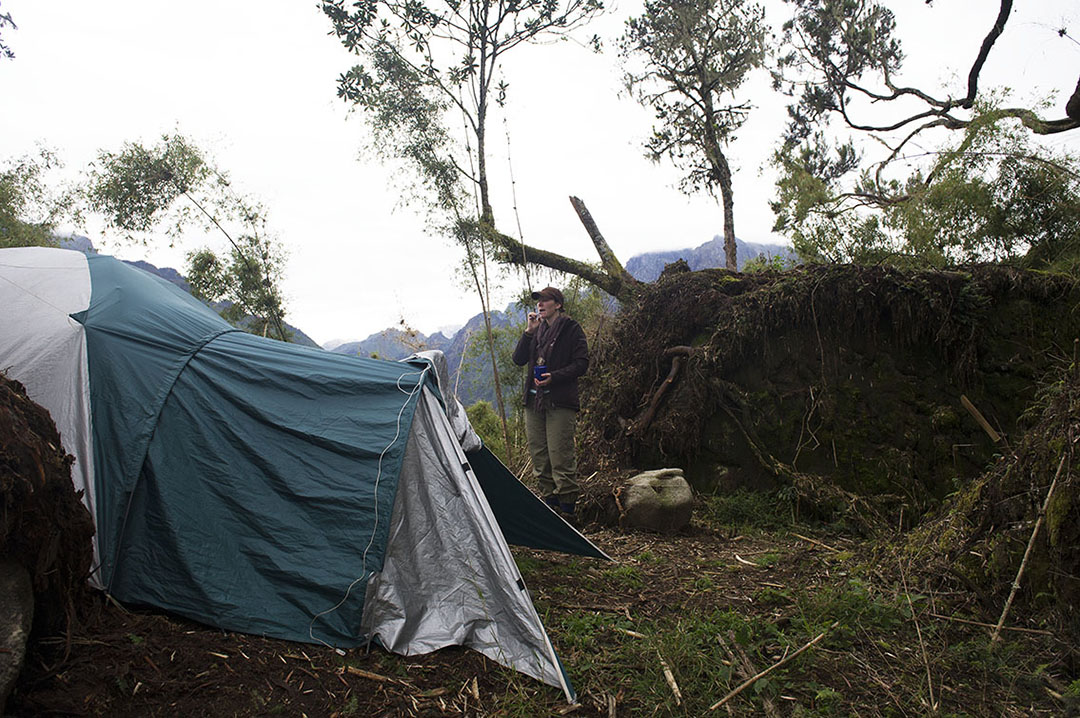 We lopen door, want in één dag willen we het tweede kamp bij het Mahoma-meer bereiken op 3300 meter. Dat is aanpoten en ruim zeven uur lopen, maar voor geoefende wandelaars en doorzetters te doen. Het ongerepte woud slingert via smalle paden omhoog, met uitzicht over de statige bergtoppen, bedekt door een waas van mist. Eindelijk klaart het op en breekt de zon door.